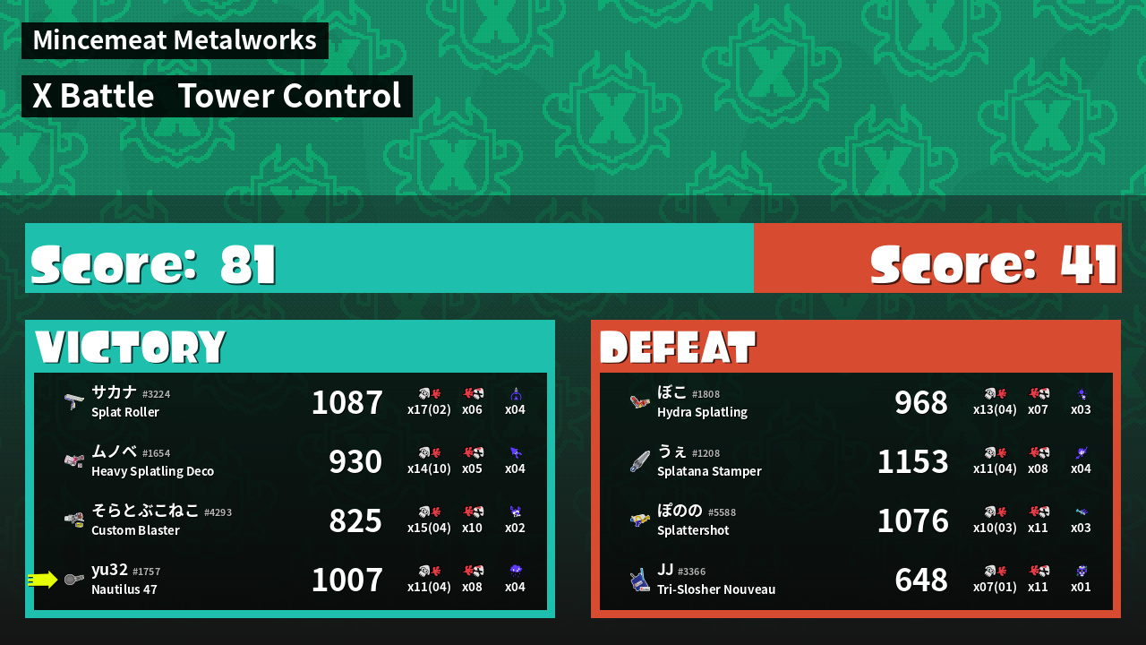 | Mode | Tower Control - X Battle | ||