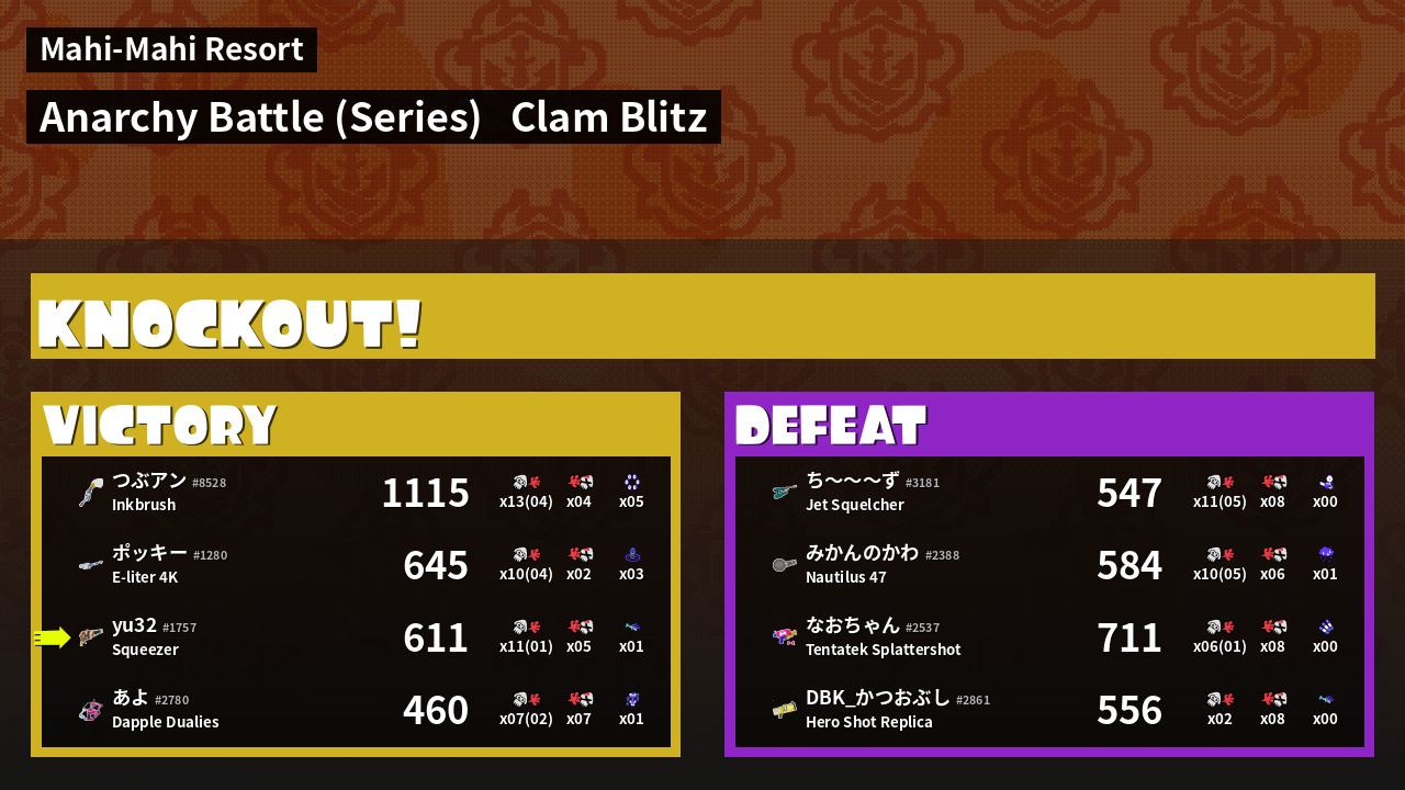 | Mode | Clam Blitz - Anarchy Battle (Series) | ||