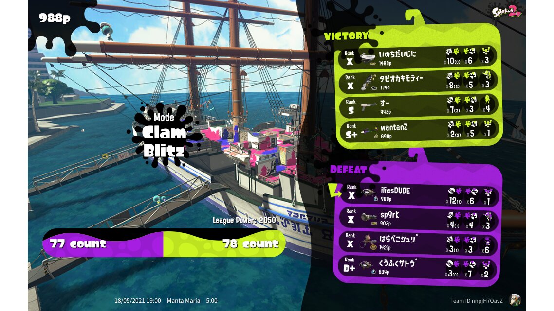 | Mode | Clam Blitz - League Battle (Twin) | ||||||||||||||||