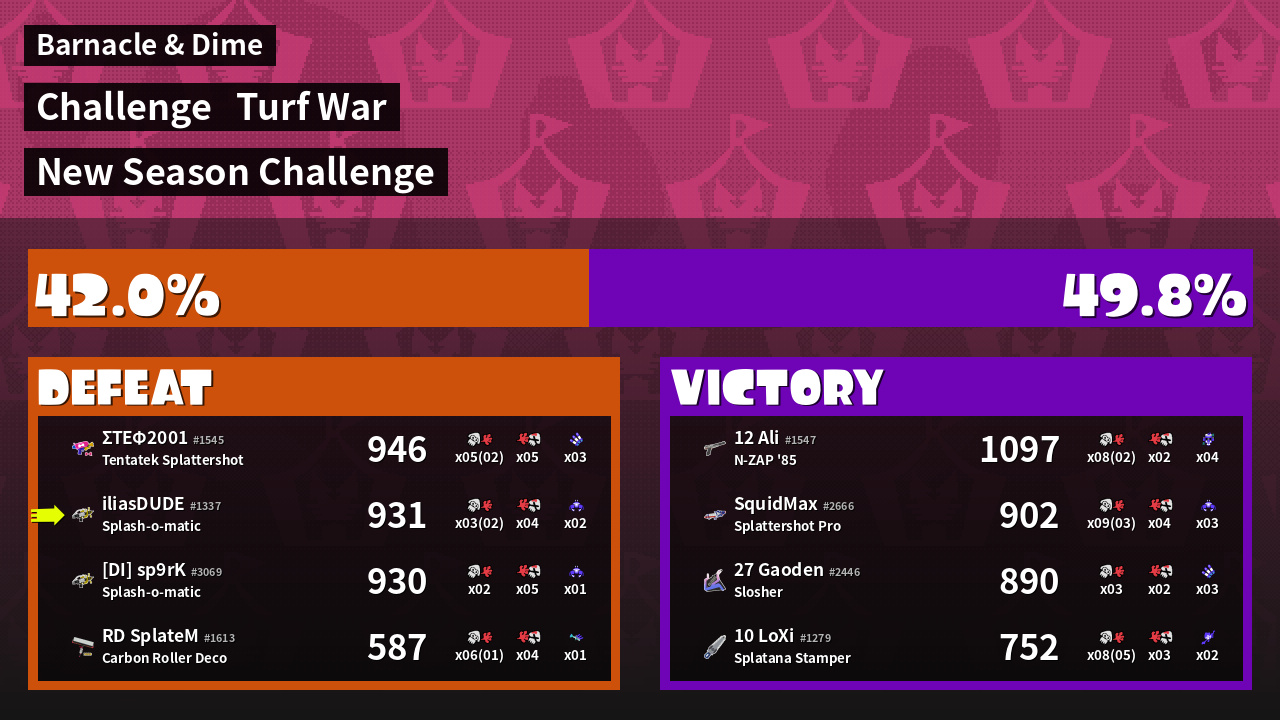 | Medals | #1 Popular Target #1 Splat Assister #1 Damage Taker | ||