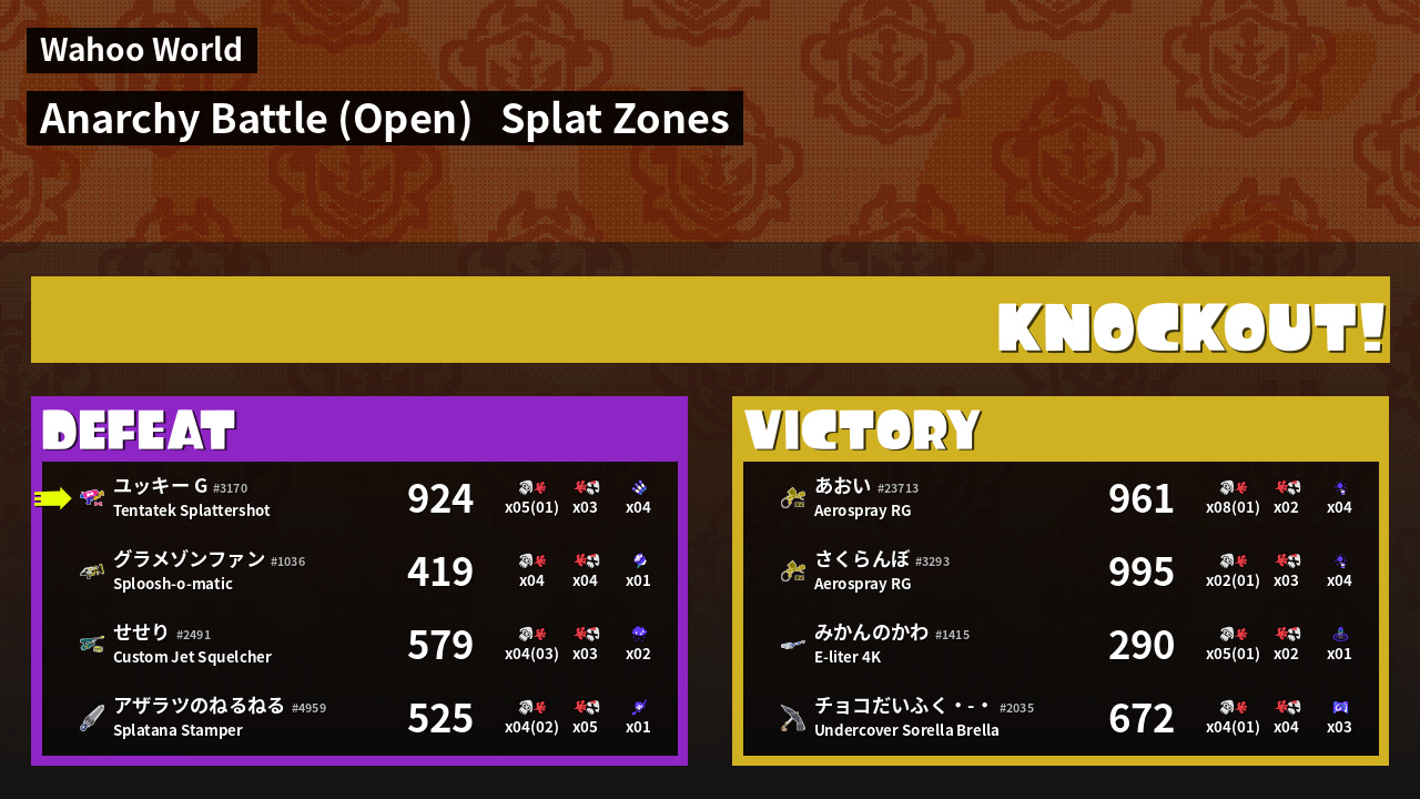 | Mode | Splat Zones - Anarchy Battle (Open) | ||
