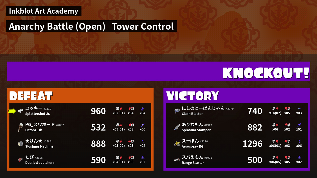 | Mode | Tower Control - Anarchy Battle (Open) | ||