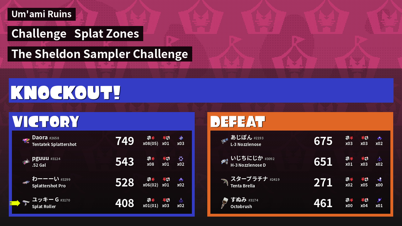 | Challenge | The Sheldon Sampler Challenge Make the most of random weapons! | ||