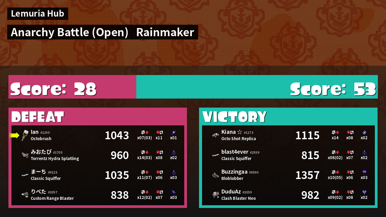 Name | Weapon | Inked | ![]() |