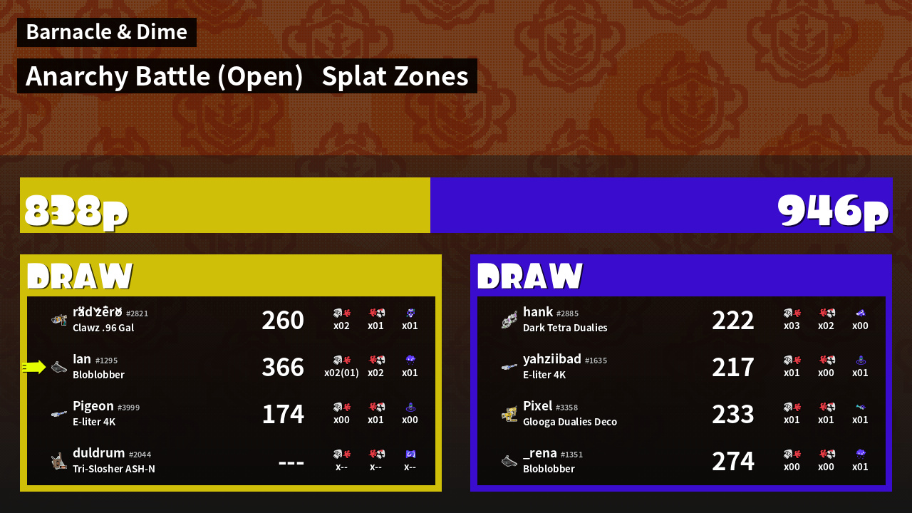 Name | Weapon | Inked | ![]() |