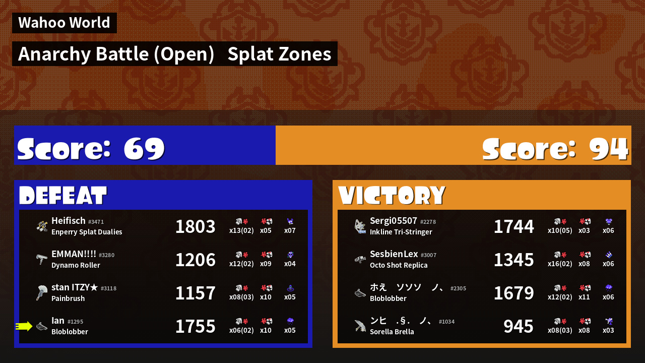 | Mode | Splat Zones - Anarchy Battle (Open) | ||