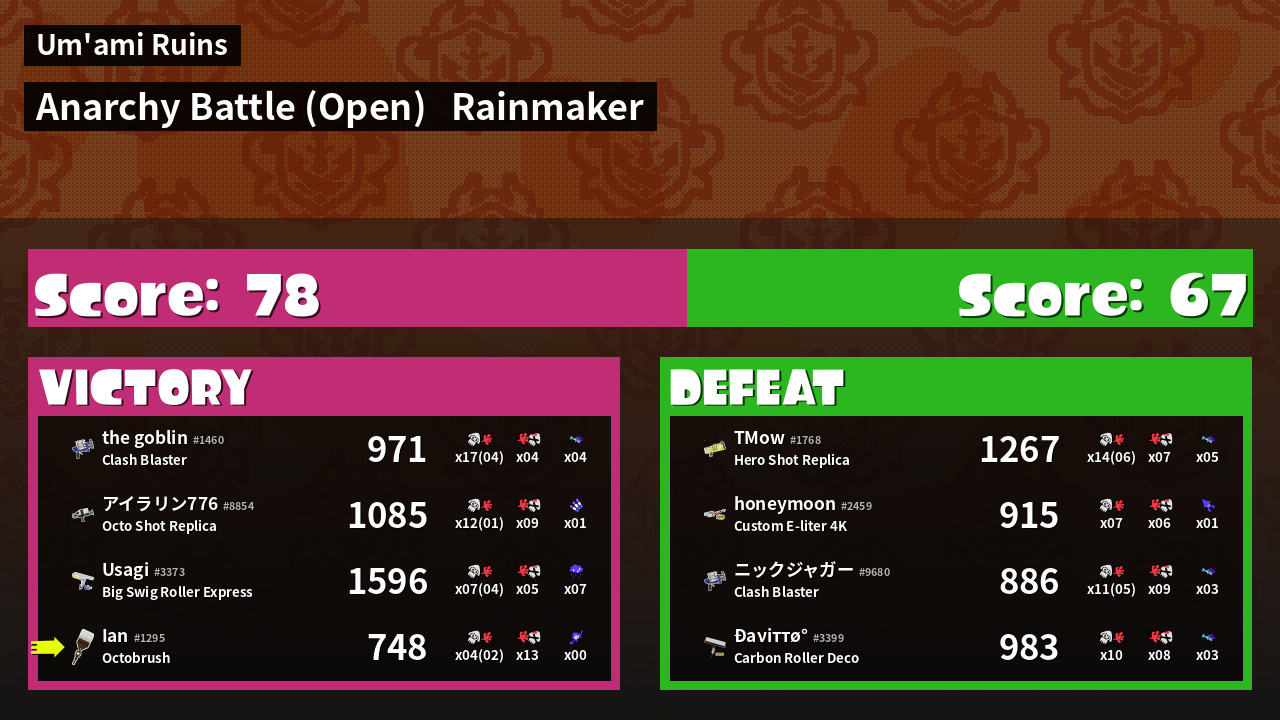 | Mode | Rainmaker - Anarchy Battle (Open) | ||