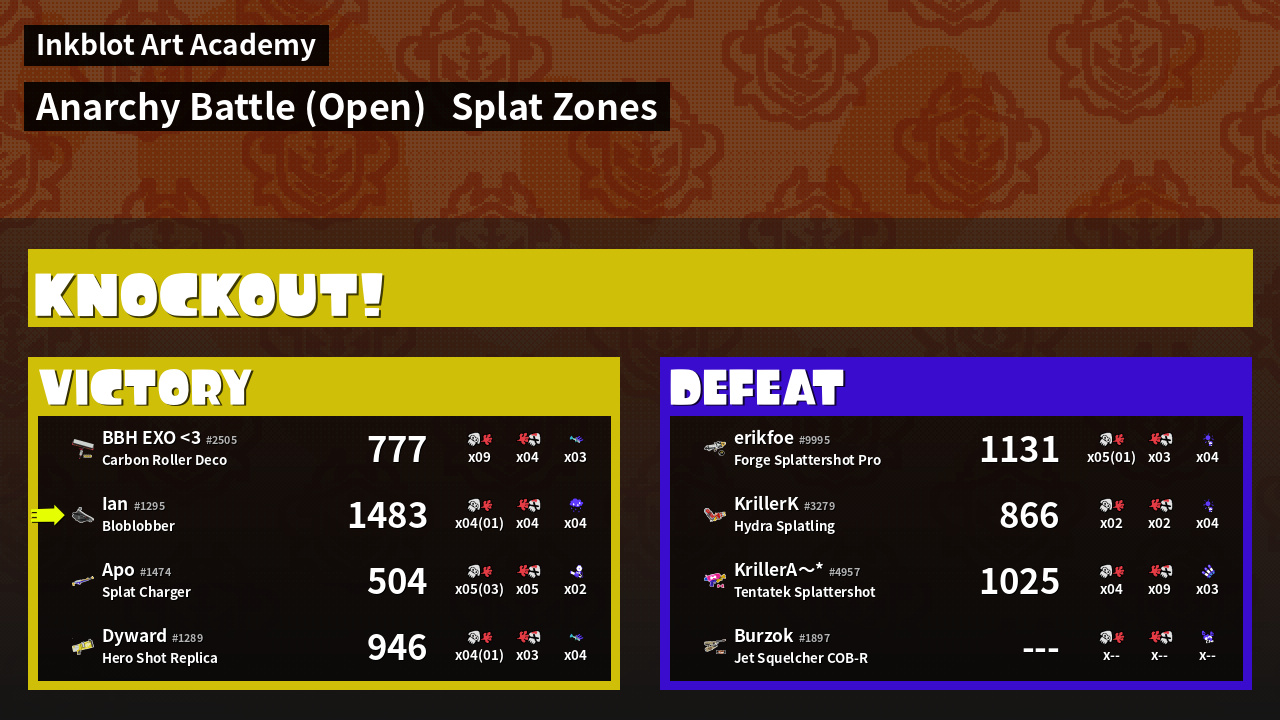 | Mode | Splat Zones - Anarchy Battle (Open) | ||