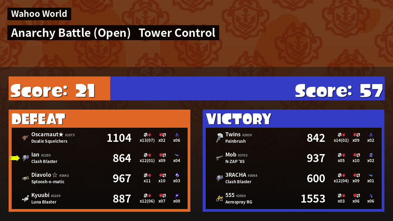 | Mode | Tower Control - Anarchy Battle (Open) | ||