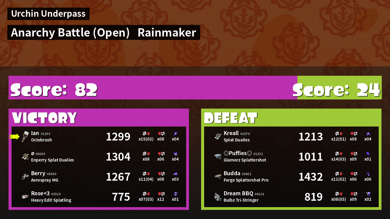 Name | Weapon | Inked | ![]() |