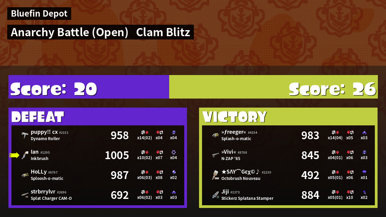 | Mode | Clam Blitz - Anarchy Battle (Open) | ||