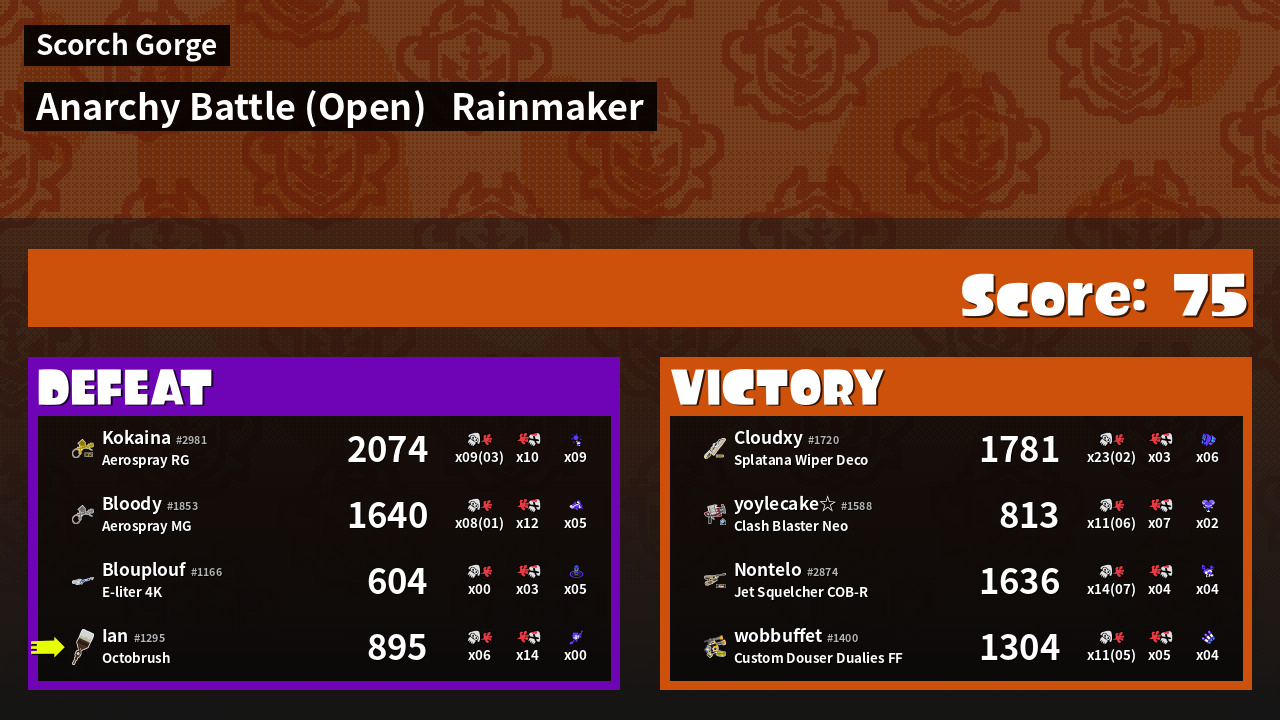 | Name | Weapon | Inked |  k |  d | KR | Sp | |