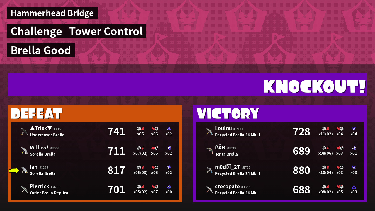 | Medals | #1 Turf Inker #1 Splat Assister #1 Damage Taker | ||