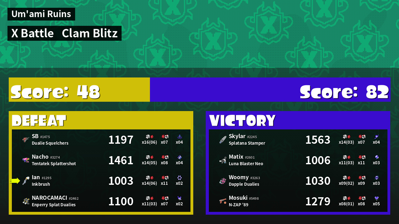 Kills / Deaths | 8 + 6 / 11 < Kill Ratio: 0.73 | ||