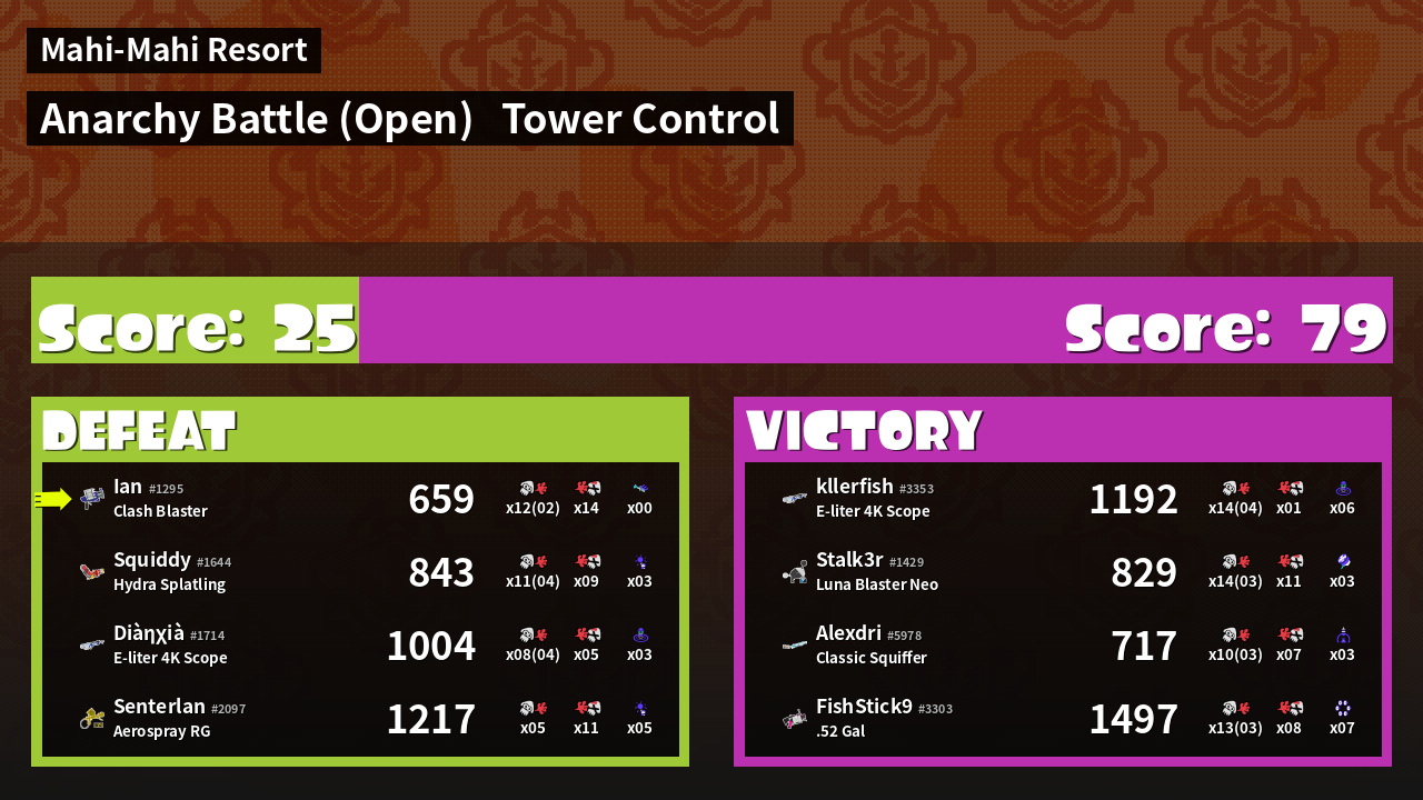 | Mode | Tower Control - Anarchy Battle (Open) | ||
