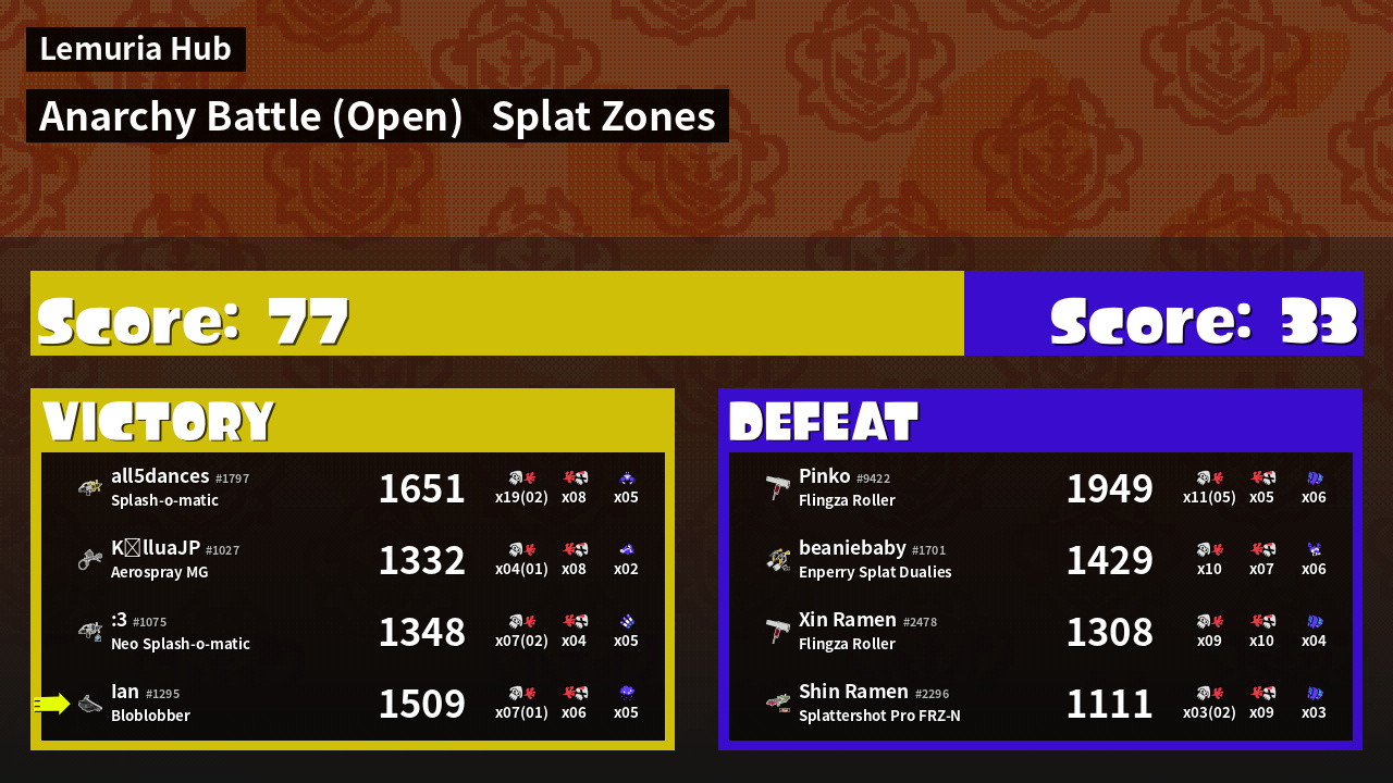 | Mode | Splat Zones - Anarchy Battle (Open) | ||