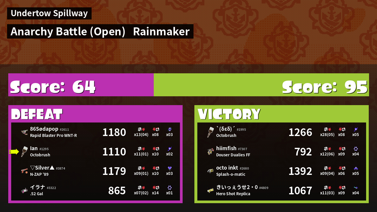 | Mode | Rainmaker - Anarchy Battle (Open) | ||