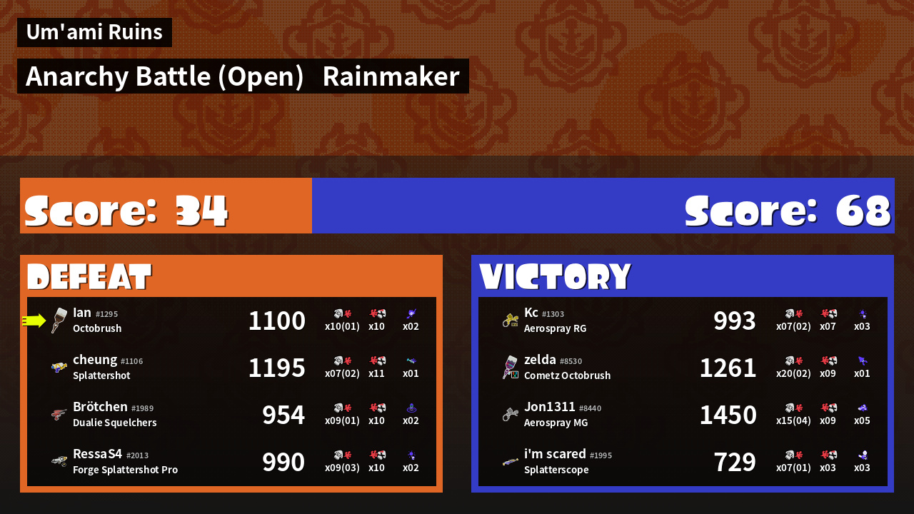| Mode | Rainmaker - Anarchy Battle (Open) | ||