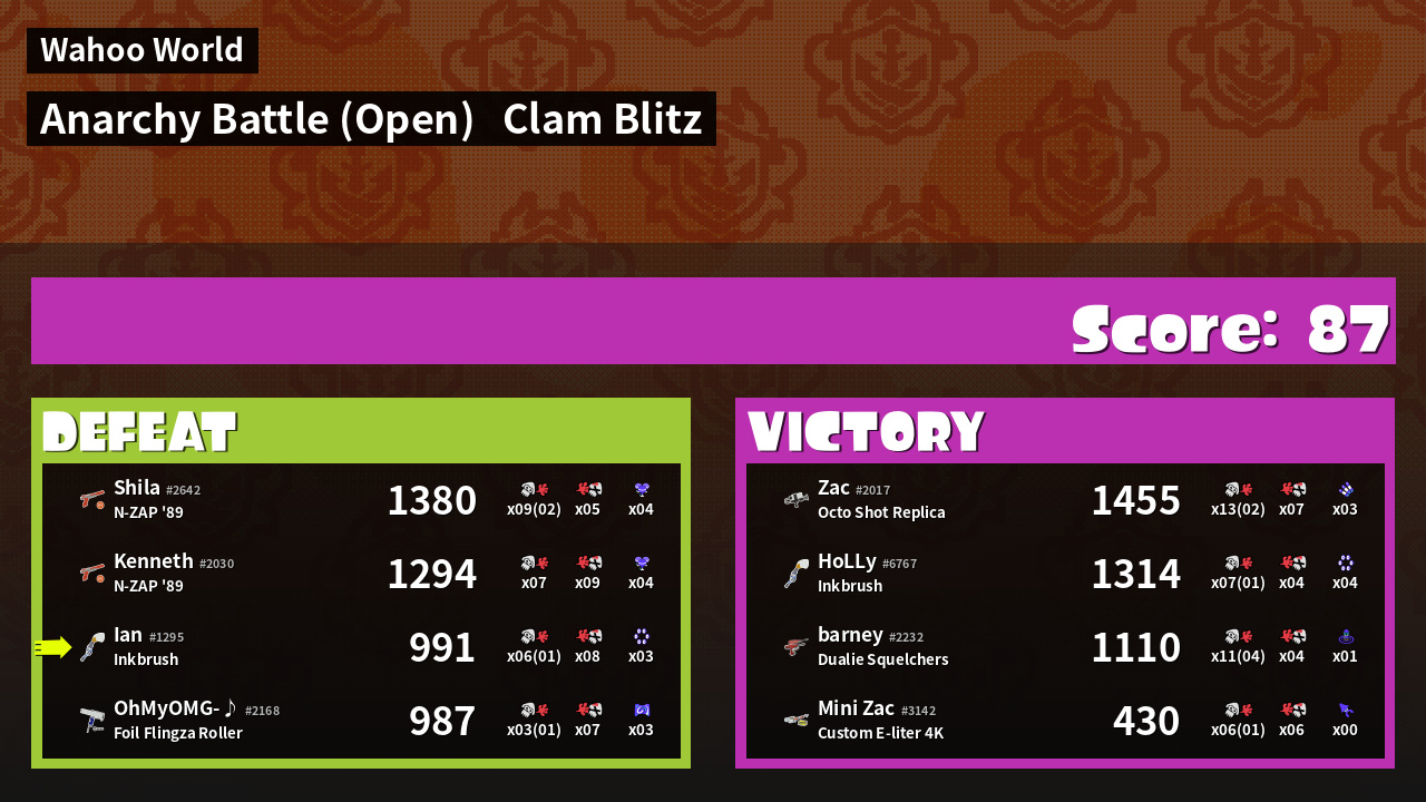 | Mode | Clam Blitz - Anarchy Battle (Open) | ||