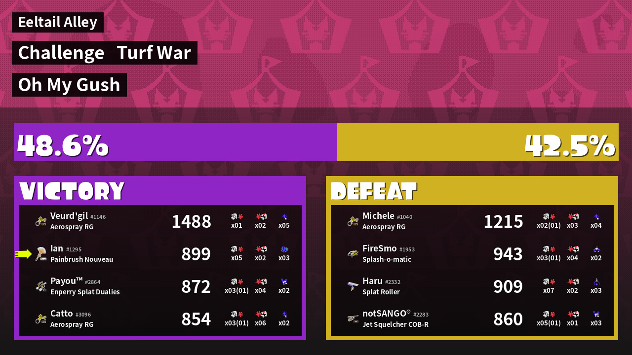 | Medals | #1 Overall Splatter #1 Super Jump Spot #1 Enemy Splatter | ||