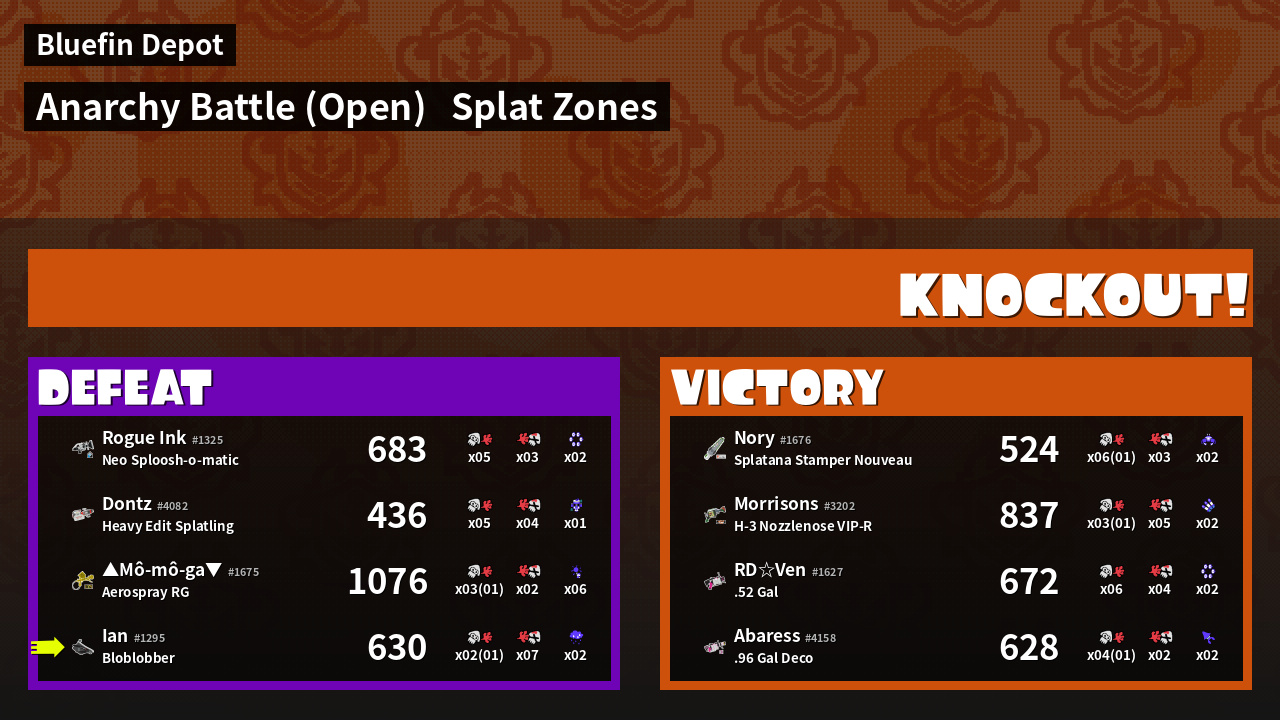 | Mode | Splat Zones - Anarchy Battle (Open) | ||