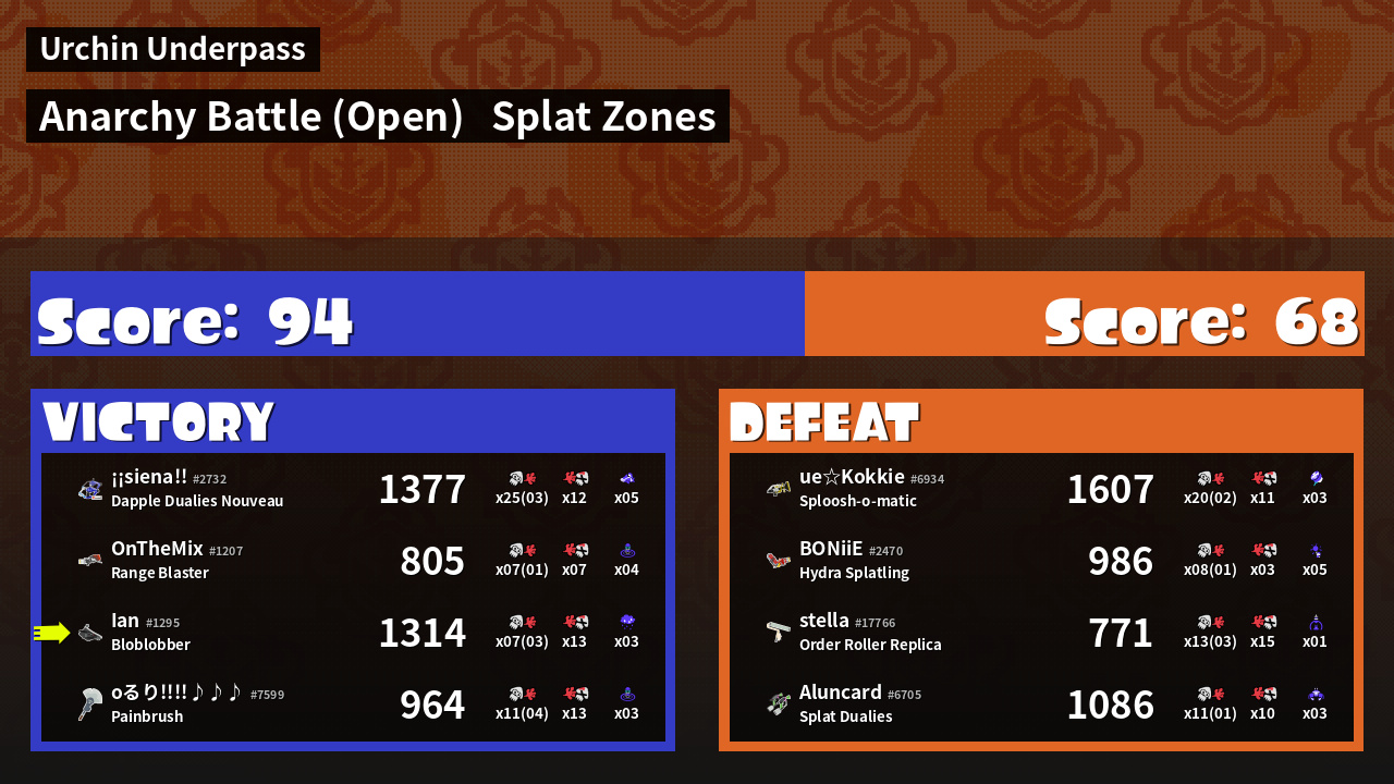 | Mode | Splat Zones - Anarchy Battle (Open) | ||