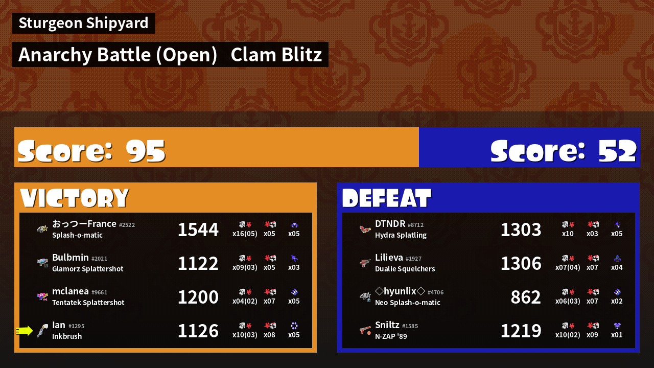 | Mode | Clam Blitz - Anarchy Battle (Open) | ||