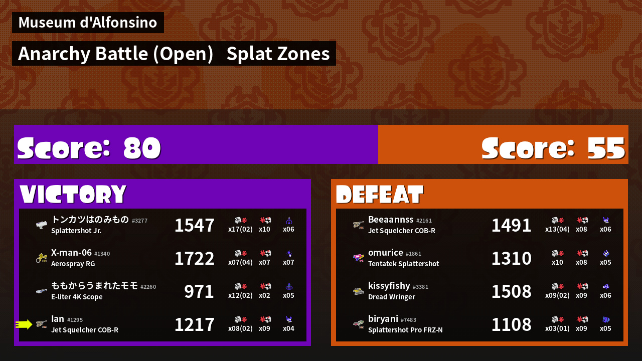 | Mode | Splat Zones - Anarchy Battle (Open) | ||