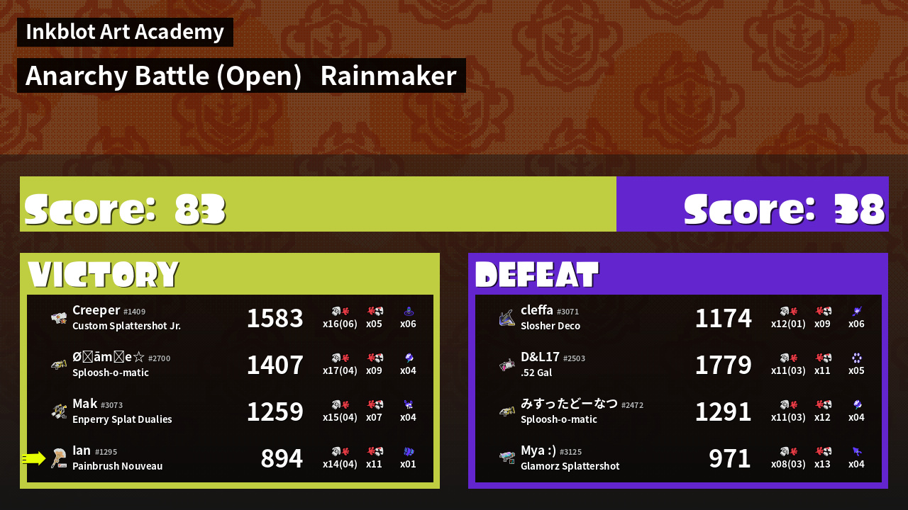 | Mode | Rainmaker - Anarchy Battle (Open) | ||