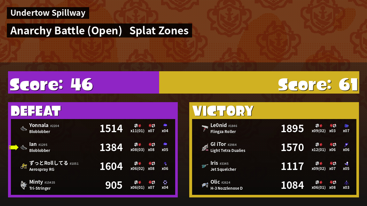| Mode | Splat Zones - Anarchy Battle (Open) | ||