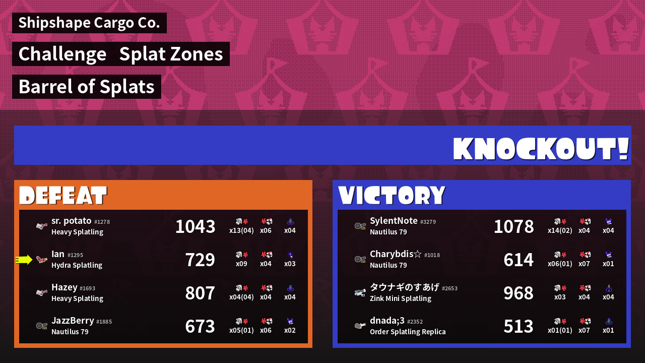 Challenge | Barrel of Splats Muster as much firepower as you can<br />in this battle of the splatlings! | ||