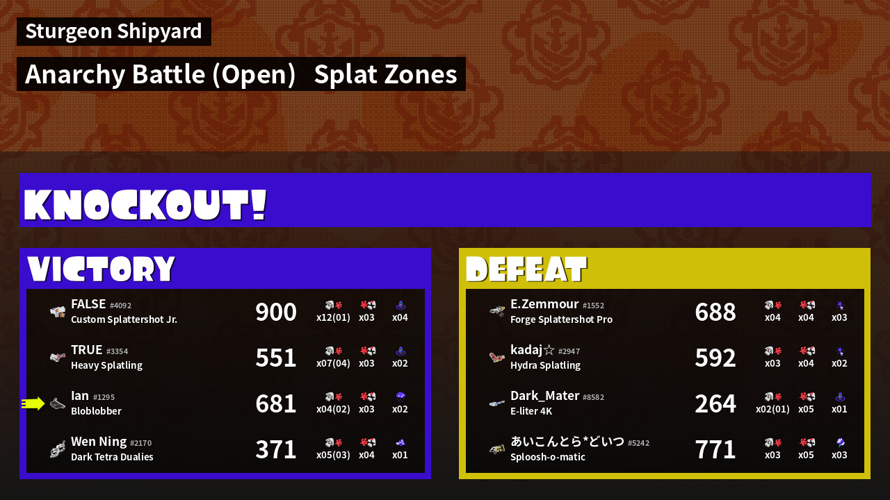 | Mode | Splat Zones - Anarchy Battle (Open) | ||