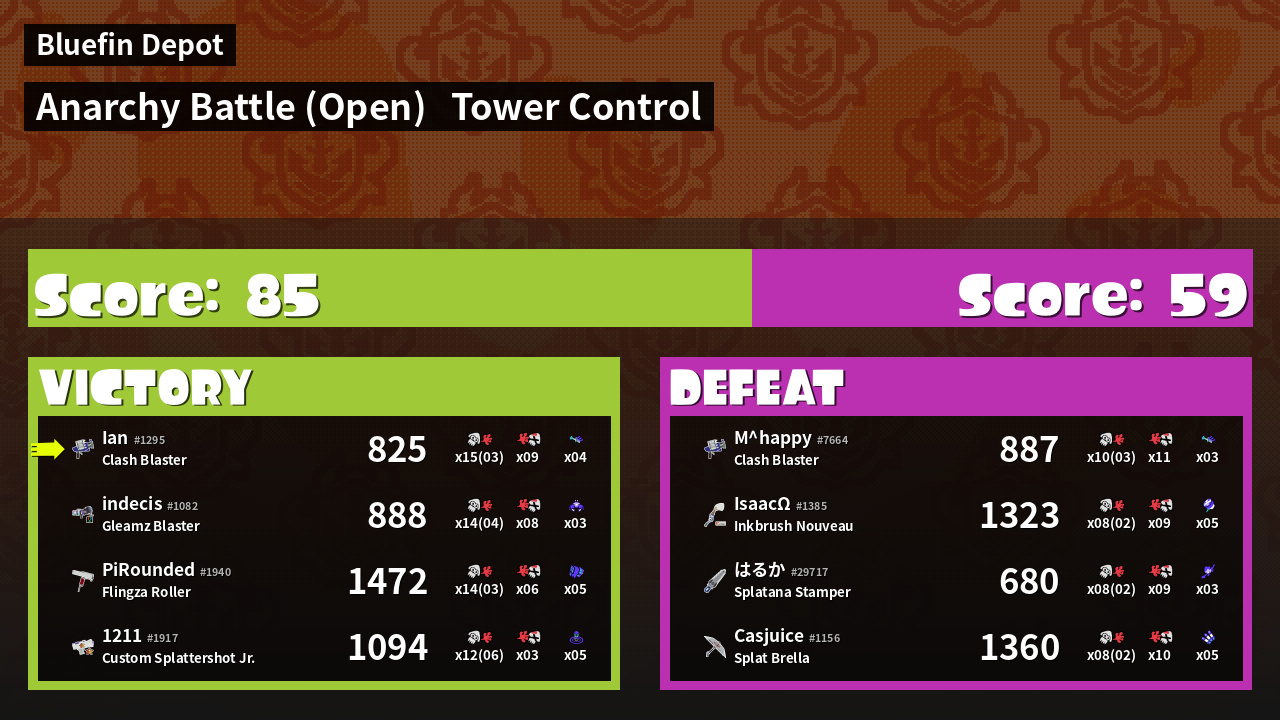 | Mode | Tower Control - Anarchy Battle (Open) | ||