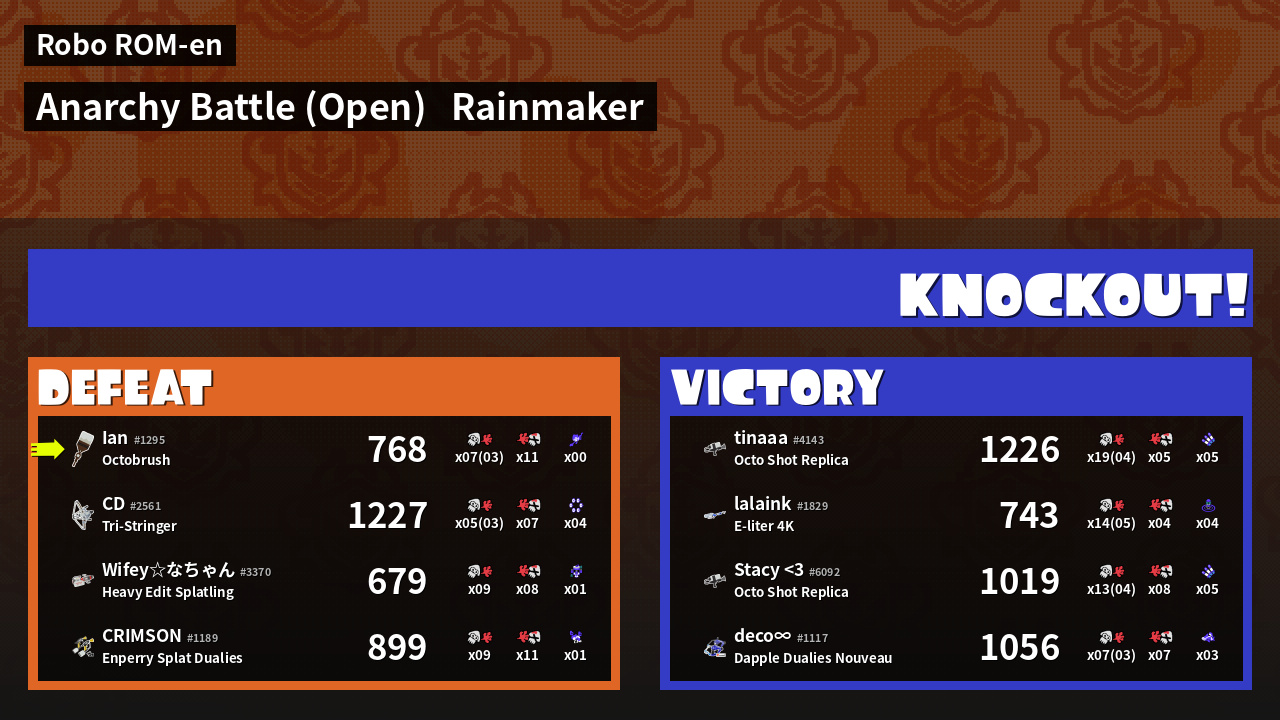 | Mode | Rainmaker - Anarchy Battle (Open) | ||