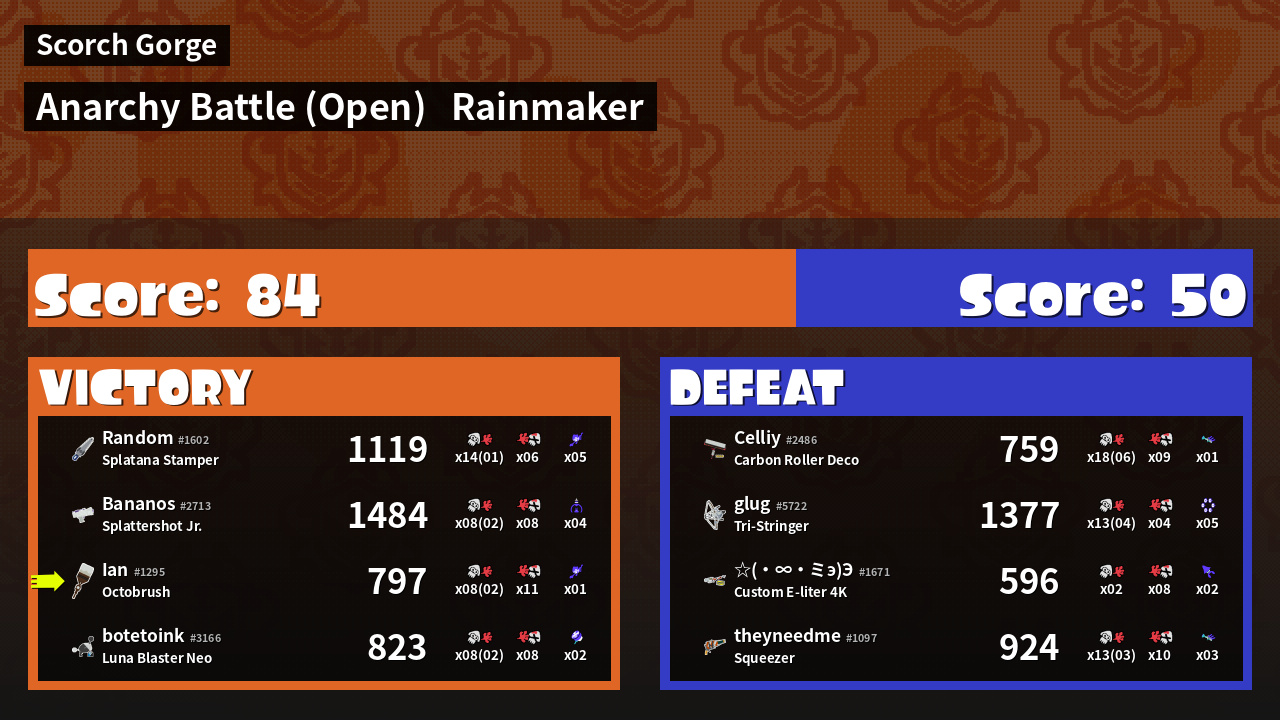 | Mode | Rainmaker - Anarchy Battle (Open) | ||