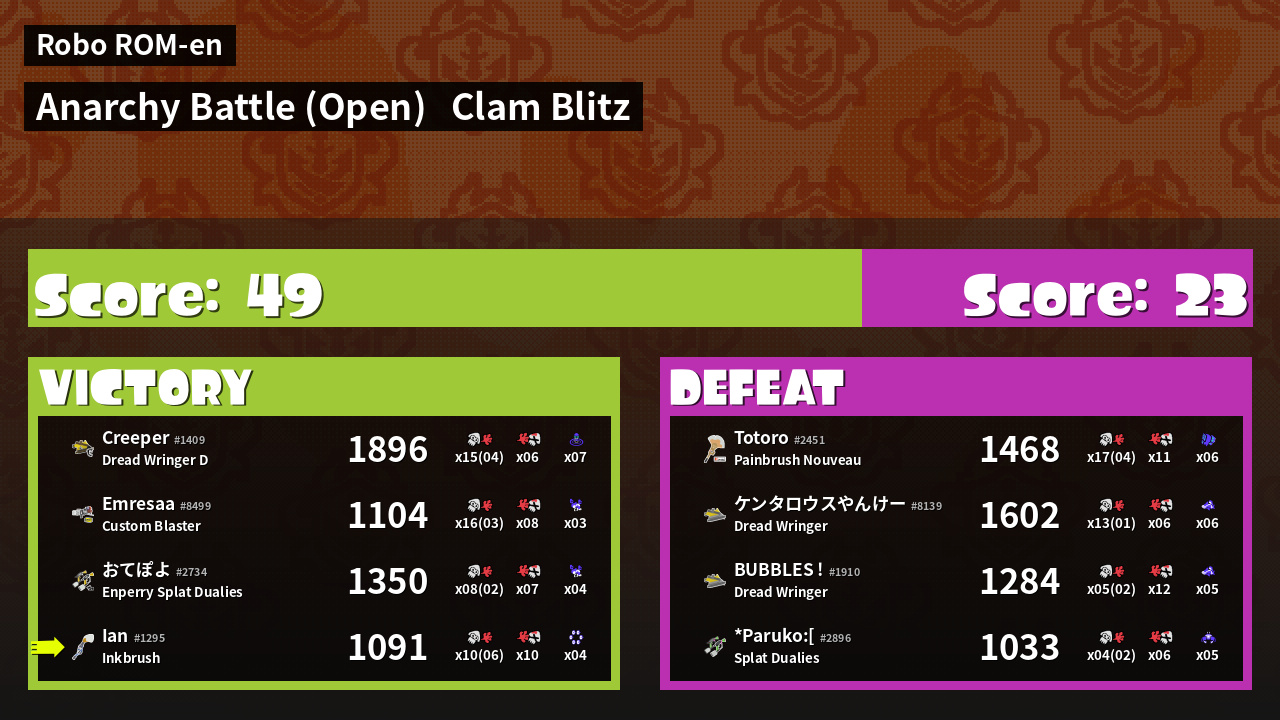 | Mode | Clam Blitz - Anarchy Battle (Open) | ||
