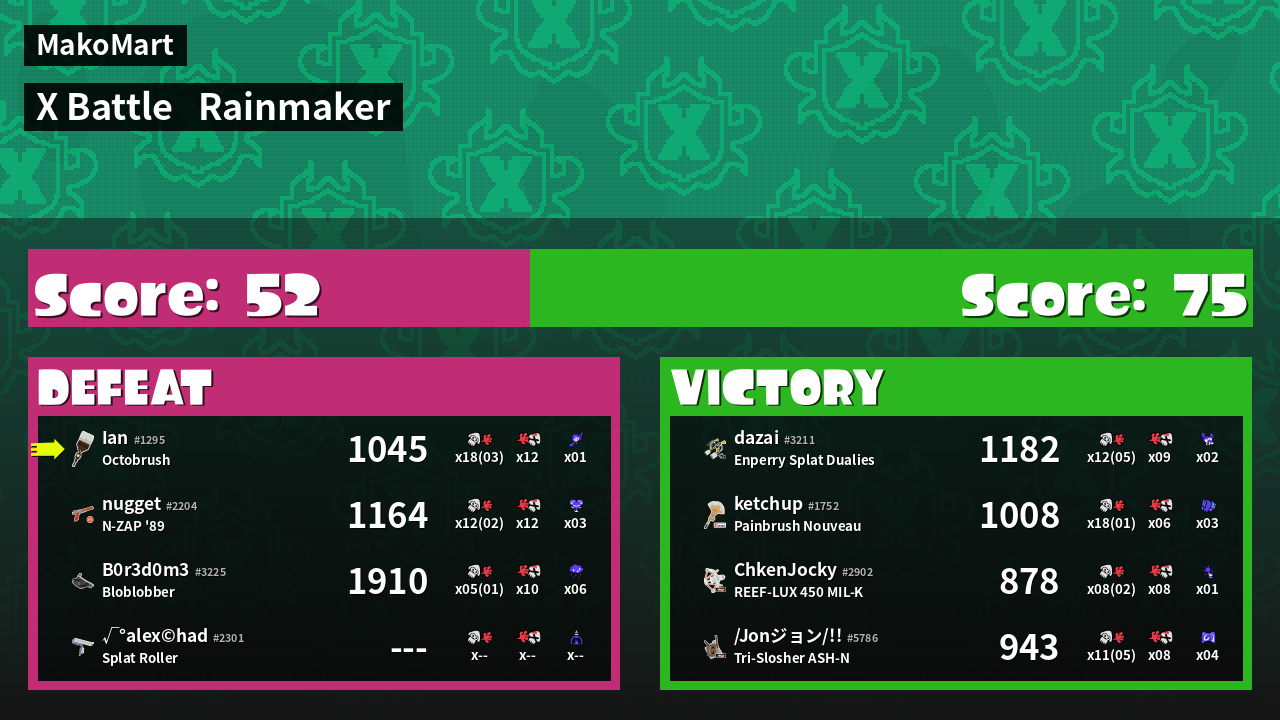 Kills / Deaths | 15 + 3 / 12 > Kill Ratio: 1.25 | ||