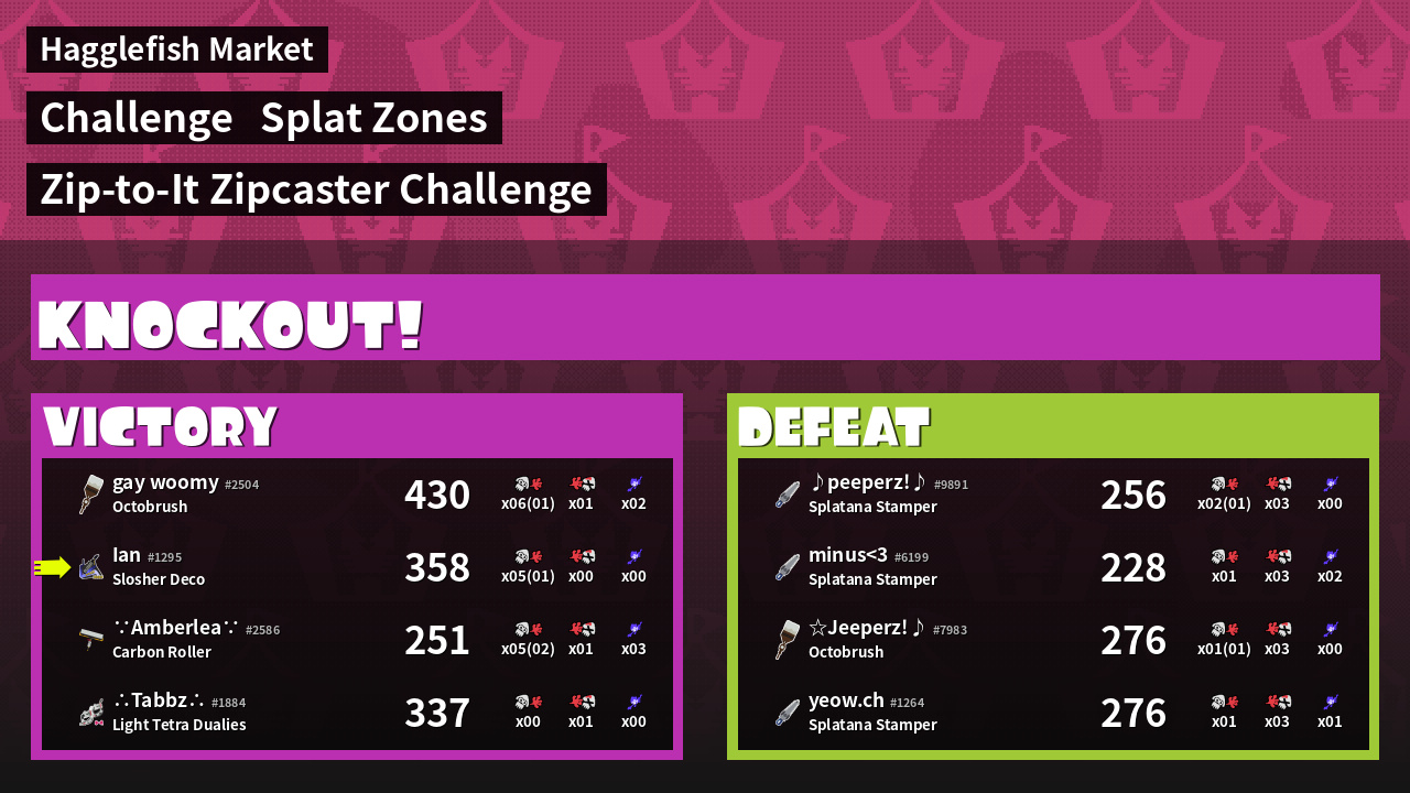 | Medals | #1 Splat Zone Inker #1 Splat Zone Guard #1 Popular Target | ||