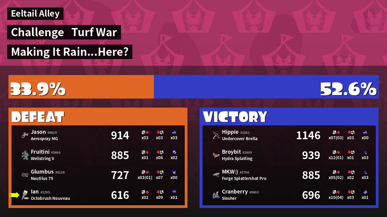 | Mode | Turf War - Challenge | ||