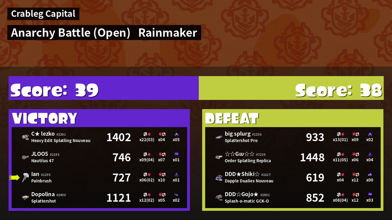 | Mode | Rainmaker - Anarchy Battle (Open) | ||