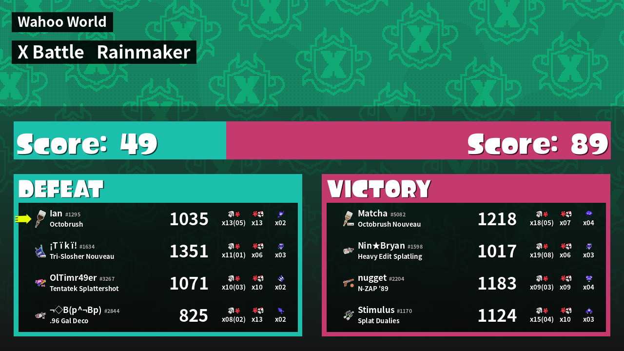 Kills / Deaths | 8 + 5 / 13 < Kill Ratio: 0.62 | ||