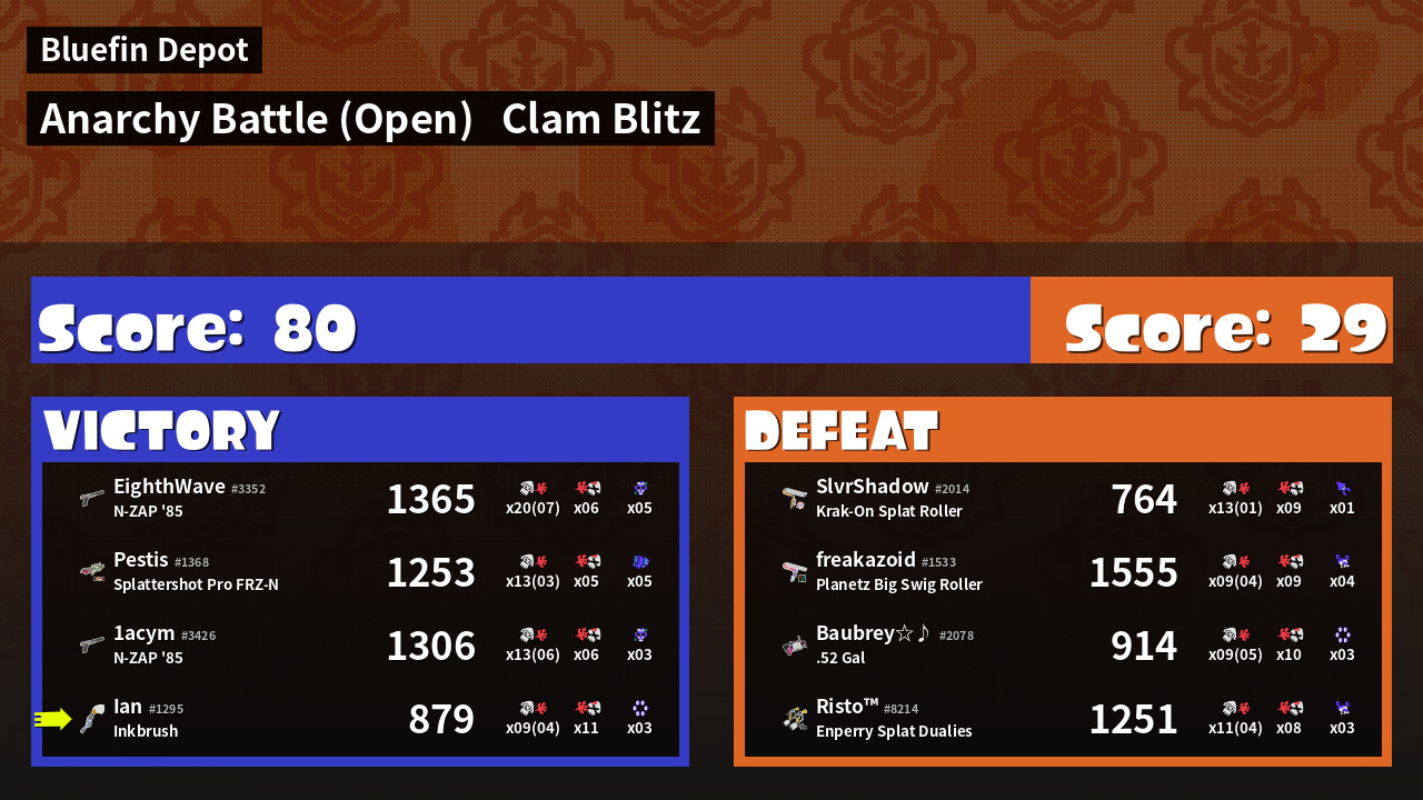 | Mode | Clam Blitz - Anarchy Battle (Open) | ||