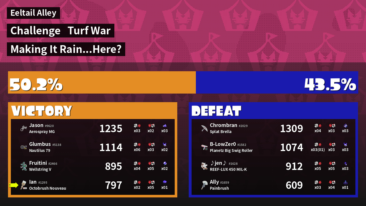 | Medals | #1 Enemy-Base Inker #1 Super Jump Spot #1 Ink Consumer | ||