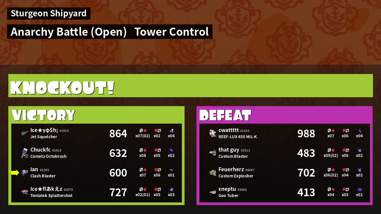 | Mode | Tower Control - Anarchy Battle (Open) | ||