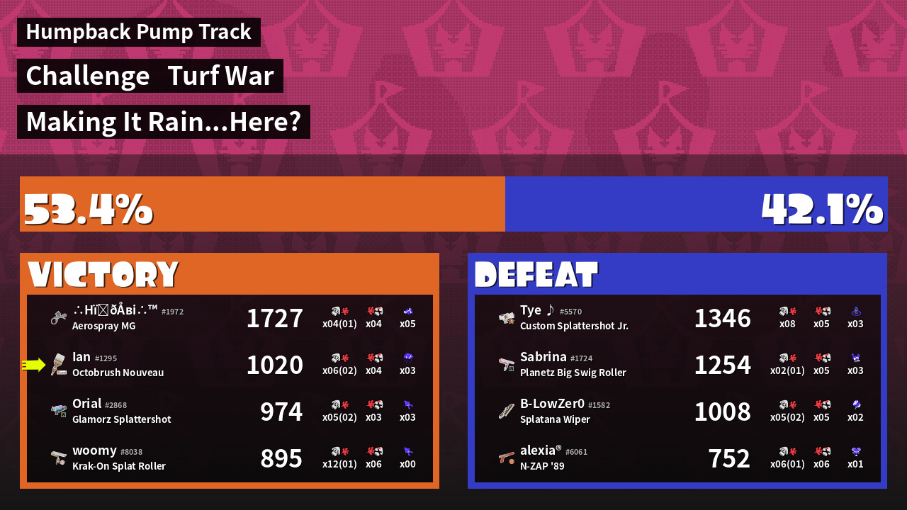 | Medals | #1 Super Jump Spot #1 Splat Assister #1 Ink Consumer | ||