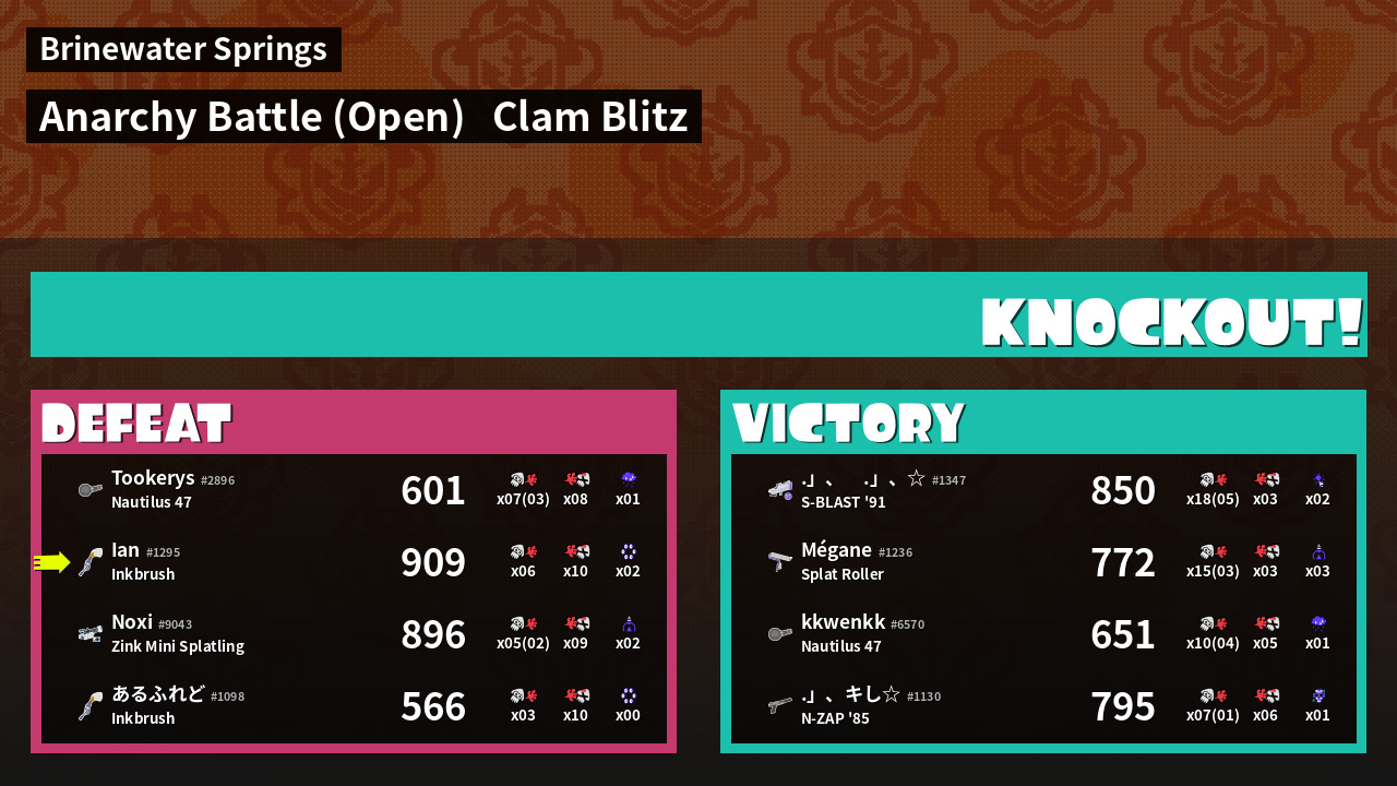 | Mode | Clam Blitz - Anarchy Battle (Open) | ||