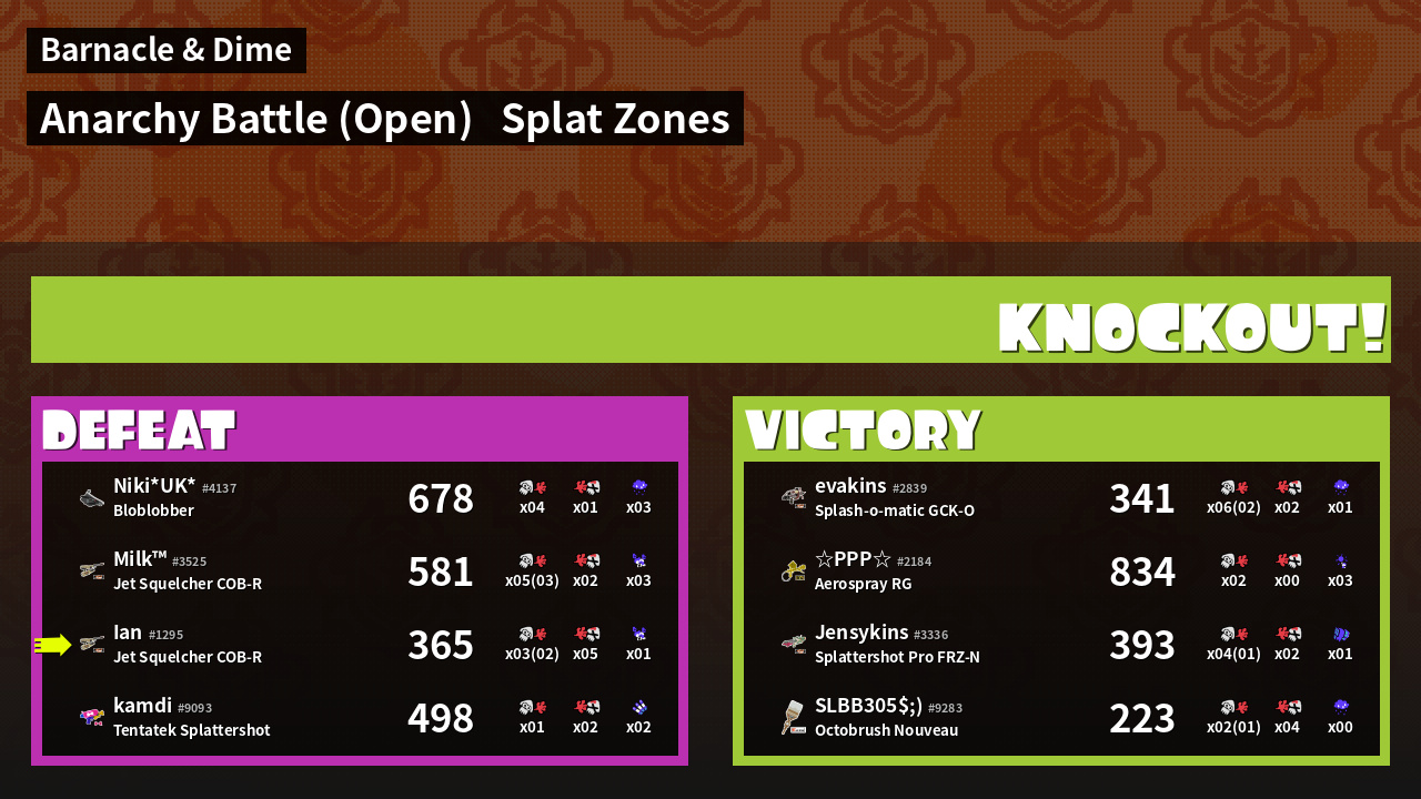 | Mode | Splat Zones - Anarchy Battle (Open) | ||