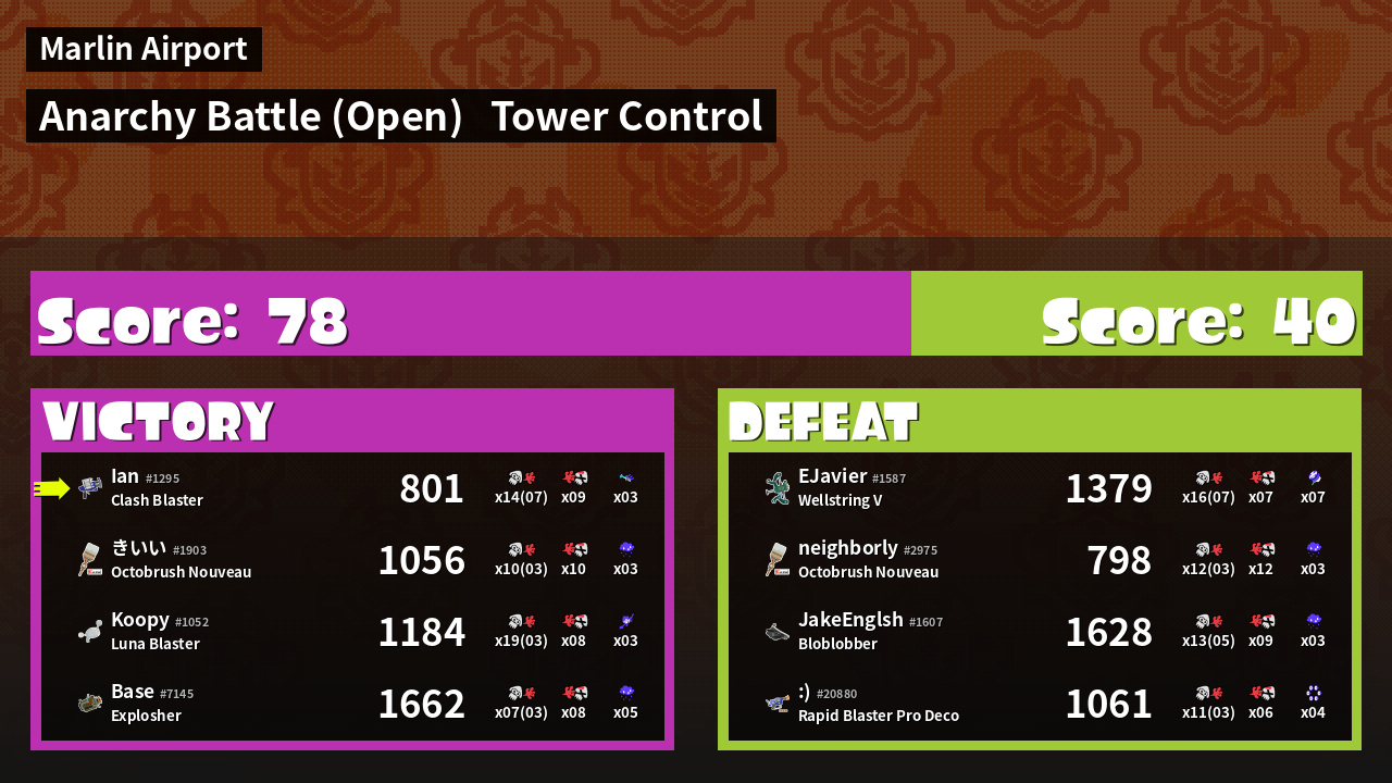 | Mode | Tower Control - Anarchy Battle (Open) | ||