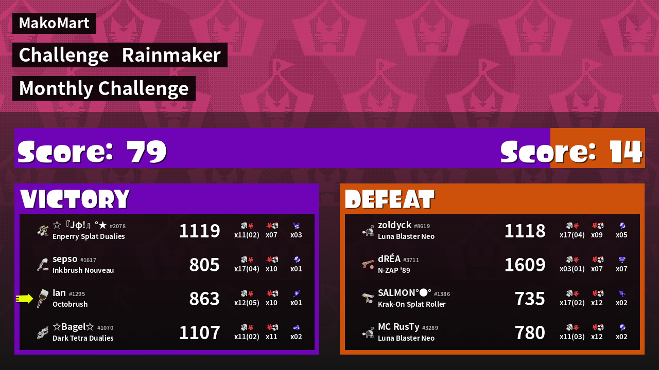 | Medals | #1 Splat Assister #1 Checkpoint Breaker #1 Damage Taker | ||