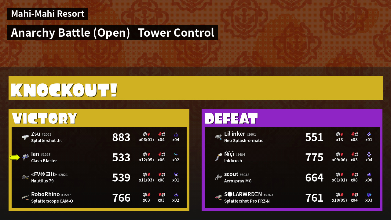 | Medals | #1 Overall Splatter #1 Splat Assister #1 Tower Stopper | ||